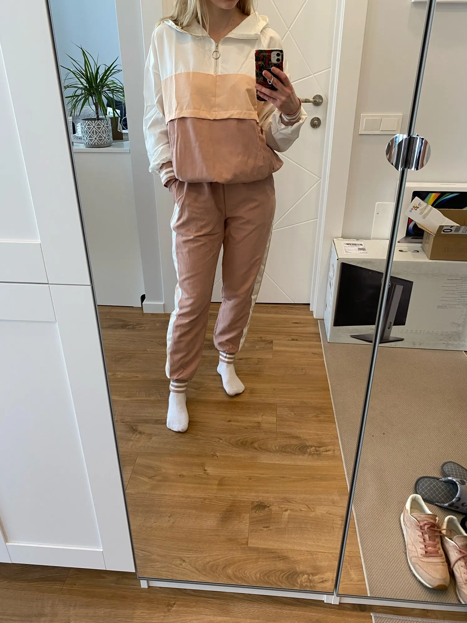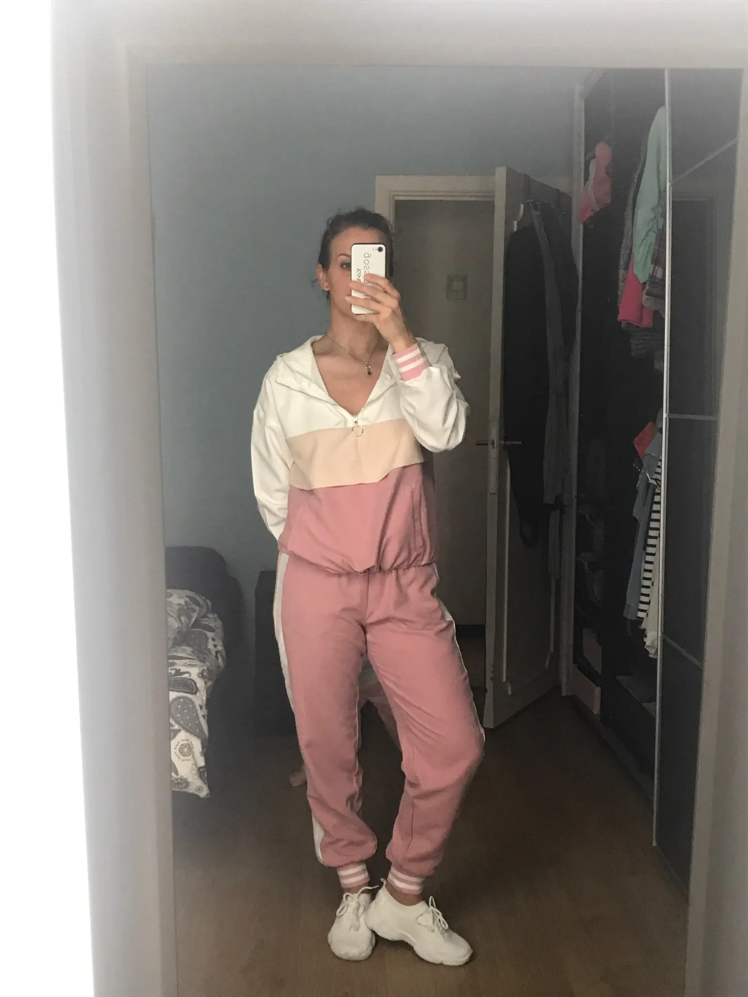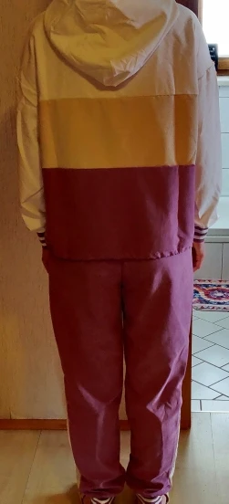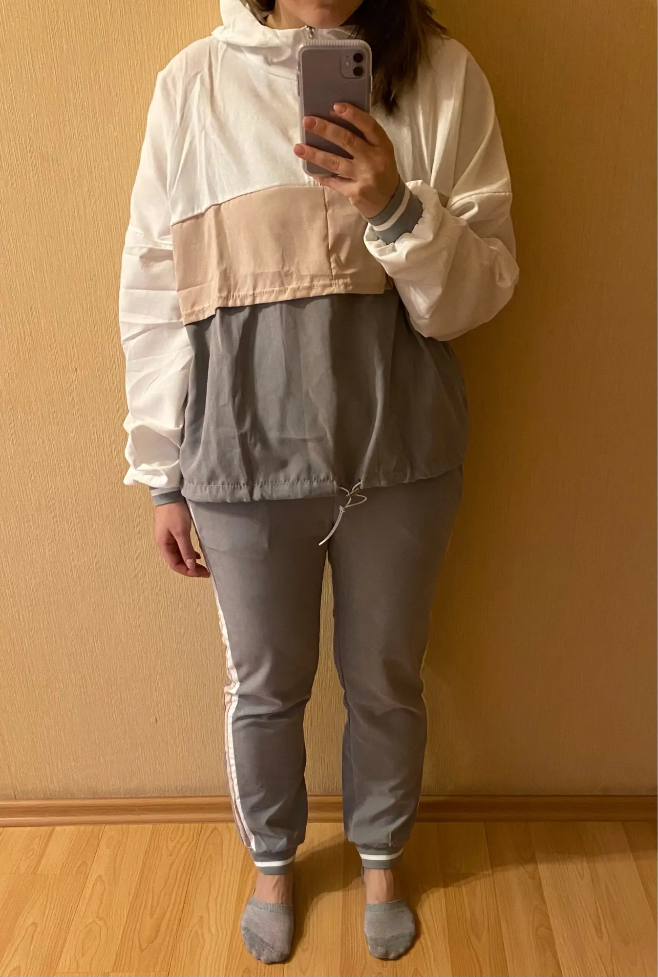 Быстрая доставка. Спортивный костюм изготовлен из тонкой ткани для лета, без подкладки, не эластичный. Брюки соответствуют размеру, но куртка выглядит слишком большой, я попробую отрегулировать его.