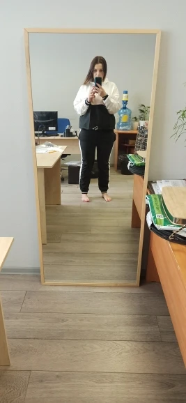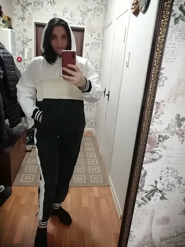 Костюм просто класс!!! Пришёл в Москву за 14 дней!!! Спасибо продавцу за оперативность! Соответствует описанию полностью. Сильно большемерит!!! Ношу размер европейский L, рост 164см, заказала, прочитав отзывы, размер в размер (тоже L). Оказался слишком свободным и штаны и кофта. Носить, конечно, буду, но обязательно ещё закажу М-ку. Белый верх просвечивает, но надев на бирюзовую кофту вид не портится... всем советую покупку.