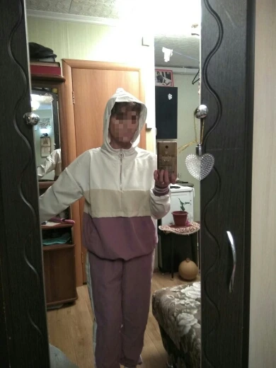 Очень приятная ткань на ощупь. Швы с крупными стежками, недочеты минимальны. Передняя средняя полоска на костюме не пришита снизу и поднимается. Кофта на тонкой длинной резинке. В штанах широкую резинку не прострочили, перекручивается. Заказ в Москву дошёл за 2 недели.