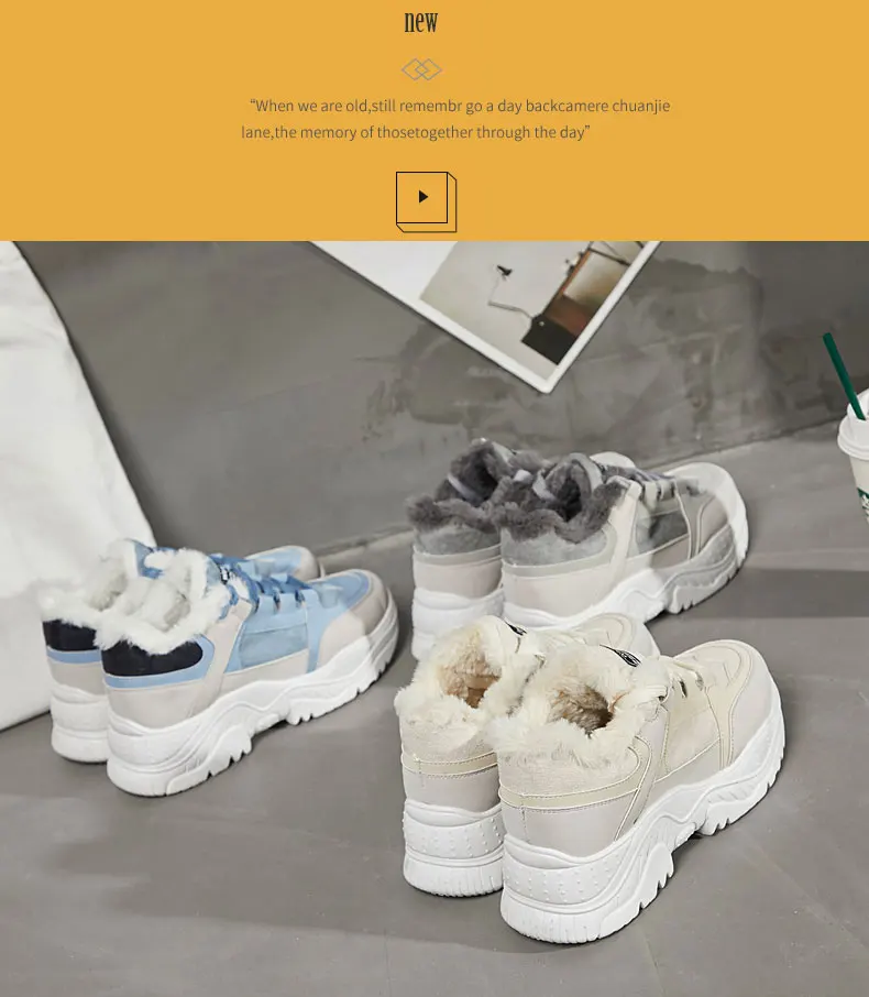 Женская зимняя обувь; кроссовки на платформе с густым мехом и плюше...