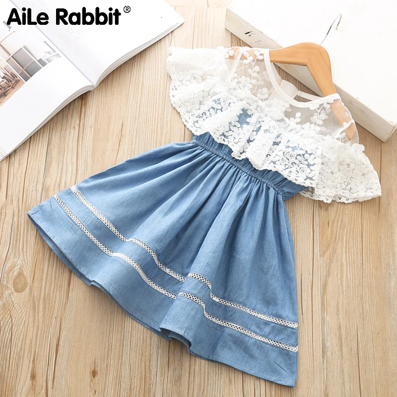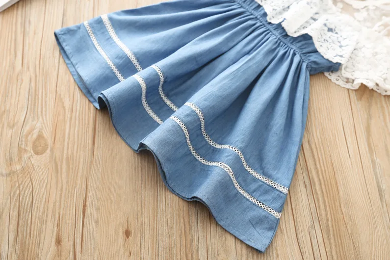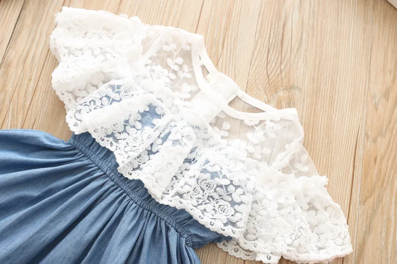 Одежда для девочек, джинсовое кружевное платье, модный наряд маленькой принцессы, бутик одежды, детская одежда для девочек
