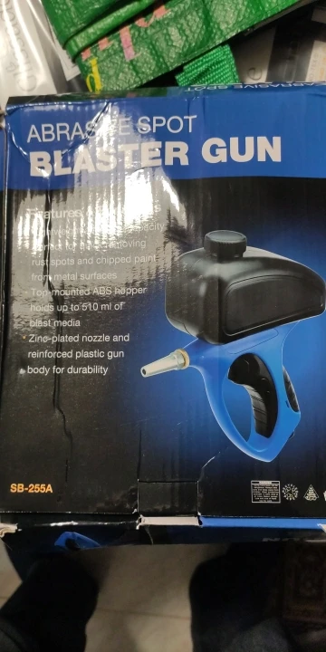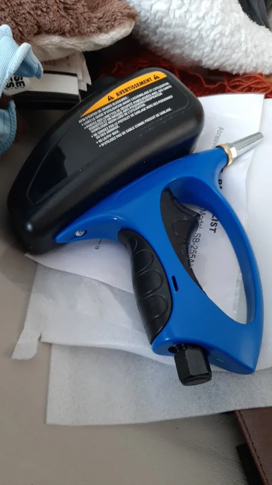 Пистолет для съемки мелкого песка с баком в верхней части пластика и ручкой очень управляемый. Подходит для использования с компрессором. Я еще не смог использовать его с тех пор, как еще не сделал коробку для сбора песка, но управление-это то, что я ценю больше всего.