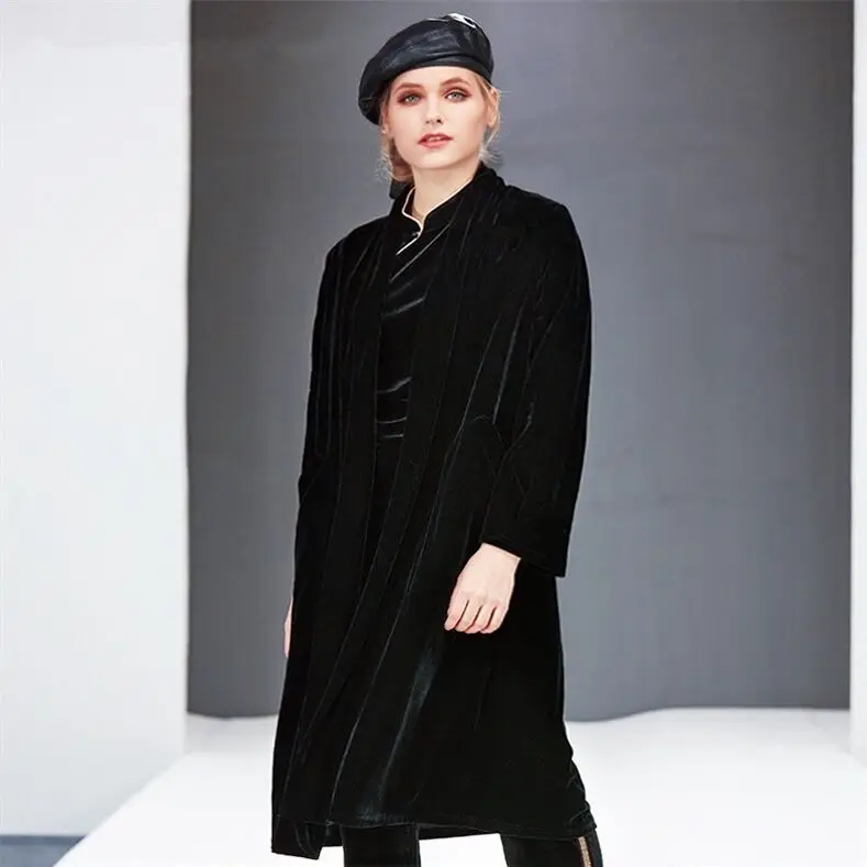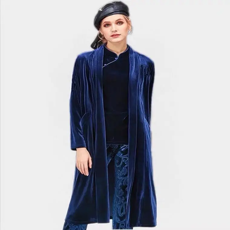 Женское длинное велюровое пальто, бархатный кардиган в английском стиле, размера плюс на осень и зиму, большие размеры 6XL 7XL 8XL, 2021