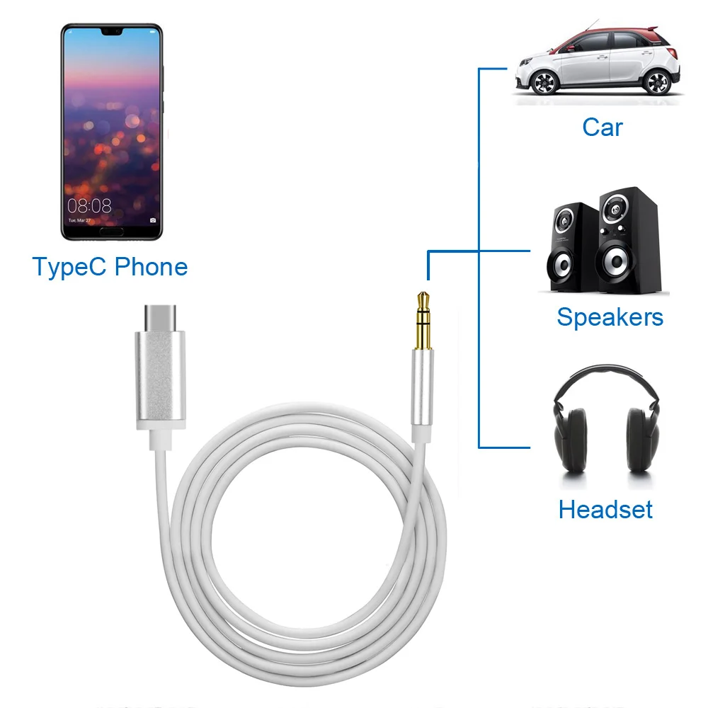 Аудиокабель с разъемами Type-C и Aux 3,5 мм, штекер-штекер, автомобильный Стереодинамик, стереоадаптер для наушников, новый для Letv, Huawei Mate 20 Pro, Samsung