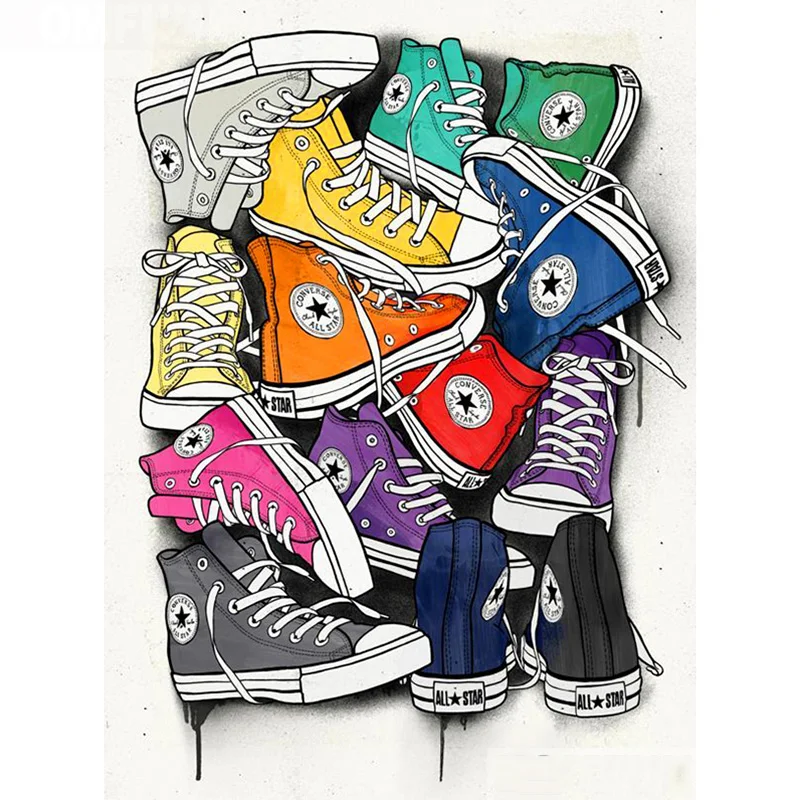 Полноразмерная квадратнаякруглая 5D алмазная живопись сделай сам, рисунок обуви, вышивка крестиком стразы, мозаичная живопись, домашний декор