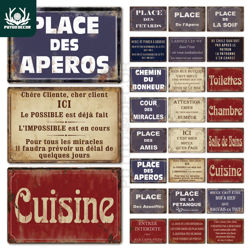 Металлическая винтажная французская Оловянная табличка Place Des Aperos в стиле ретро, Настенный декор для бара, паба, клуба, железная декоративная табличка