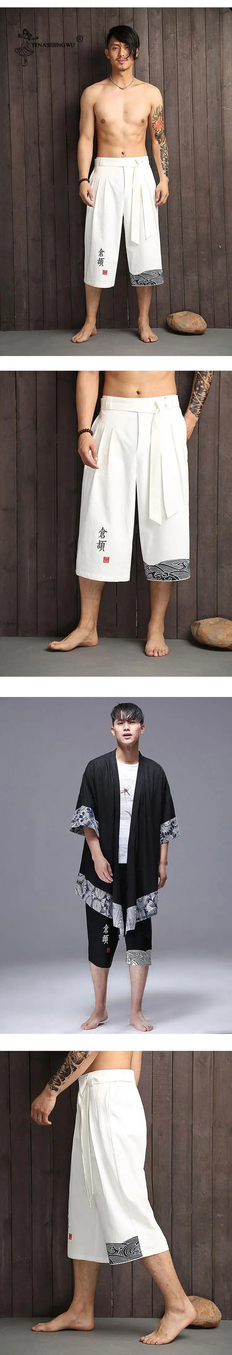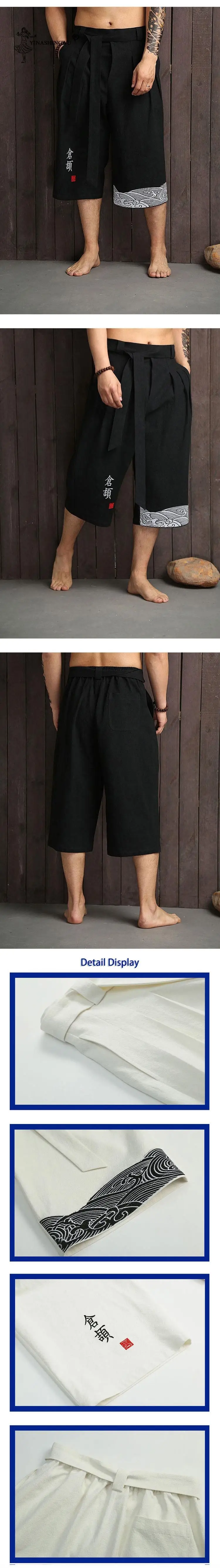 Мужские брюки, азиатская одежда, брюки для ванной в японском стиле, повседневные свободные мужские брюки Yukata, льняные укороченные брюки