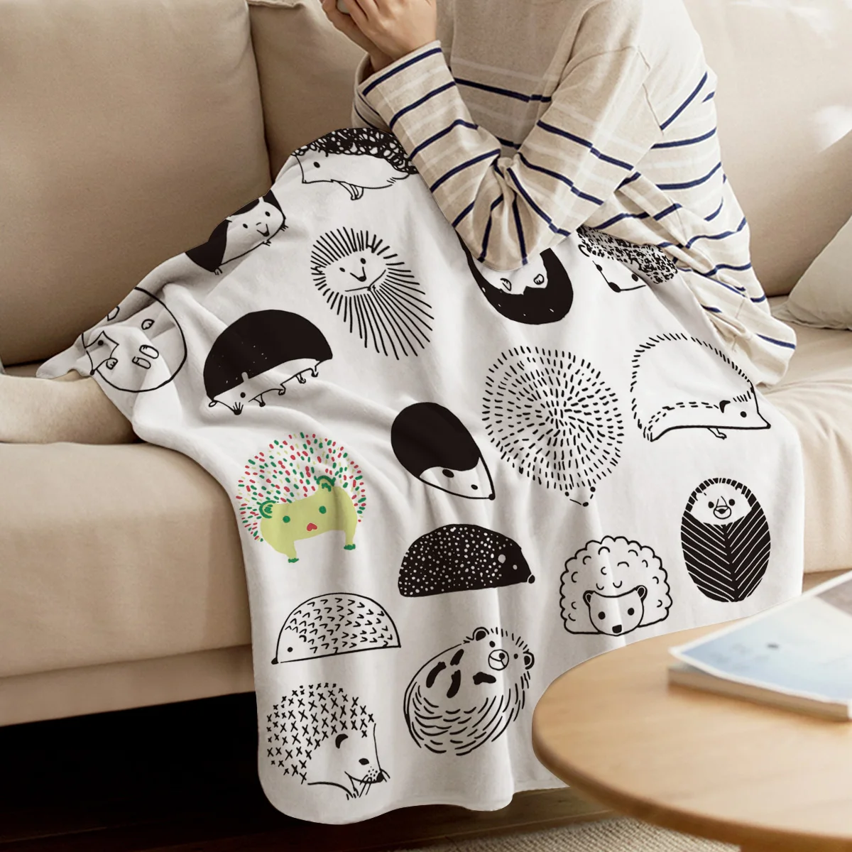 Нарисованное вручную покрывало для кровати с рисунком ежика, мультяшное животное, одеяло, Фланелевое флисовое покрывало для улучшения сна, флисовое покрывало