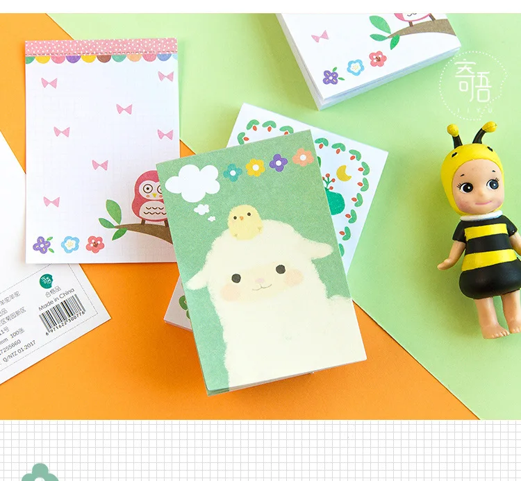Блокнот для заметок с маленькими цветами, 100 листов, милые Стикеры с животными N Times, портативный блокнот, школьные и офисные принадлежности