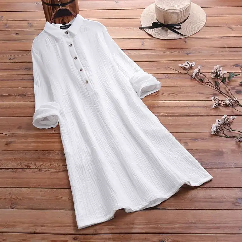 Рубашка ZANZEA Женская хлопково-льняная с длинным рукавом, винтажна...