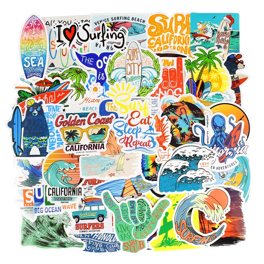 Наклейки для серфинга, Стикеры для самостоятельного изготовления игрушек, предметов для пляжа, путешествий, летнего сезона, для серфинга, чемодана, велосипеда, автомобиля, ноутбука, скейтборда, 50 шт.