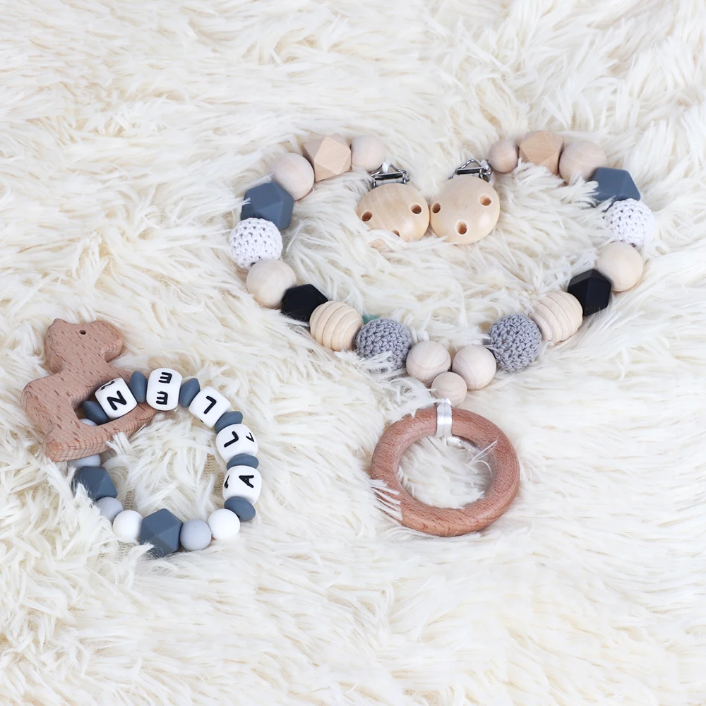 Деревянный Прорезыватель для зубов, детские игрушки для прорезывания зубов, бусины, погремушка сделай сам, зажим для коляски, детский деревянный Прорезыватель для зубов