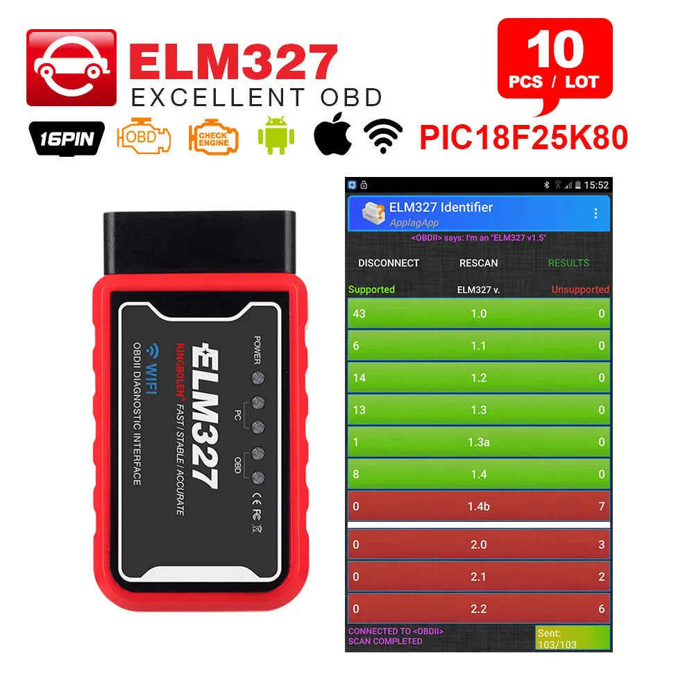 10 шт. ELM327 V1.5 Bluetooth WIFI с чипом PIC18F25K80 ELM 327 OBD2 диагностический инструмент для AndroidIOSPC OBDII автоматический сканер