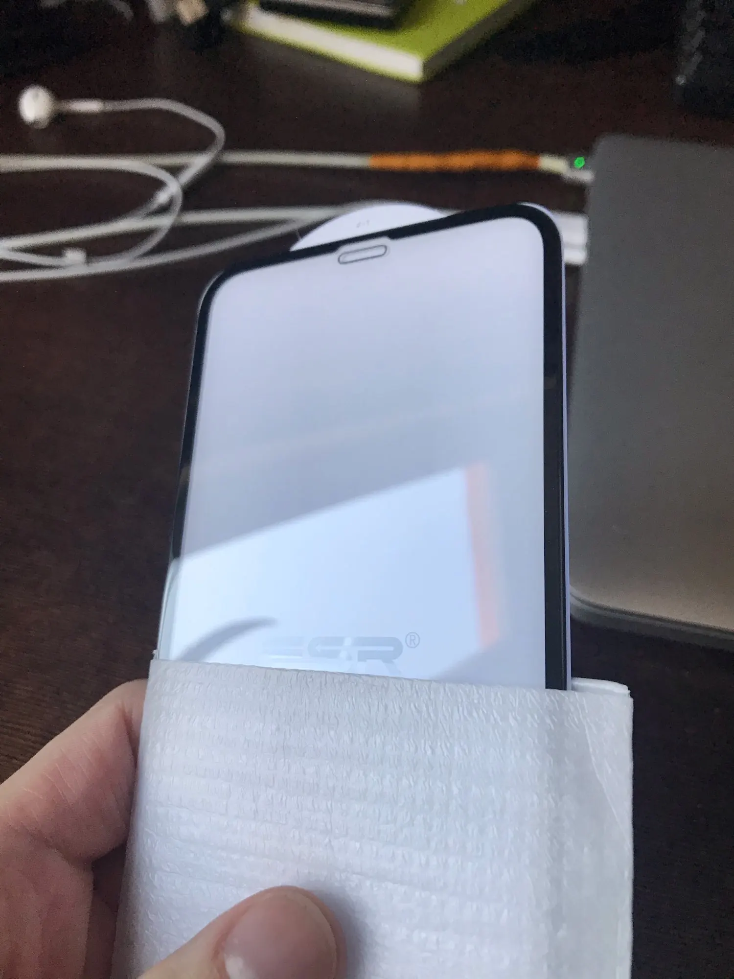 Сначала по минусам: упаковка на 3 из 5 - пакет с одним слоем пупырки внутри, как следствие, коробка слегка помялась и стекло внутри нее было чуть изогнуто, по этому наверное при поклейке осталтсь пузыри по краям. Плюсы: рамка в комплекте, именно на телефон с ней очень удобно лепить стекло; минимум затемнения рамки в верхней части, это хорошо, так как на других стеклах часто не срабатывает сенсор приближения при разговоре. Хорошее олеофобное покрытие. Ну и сами рамки стекла (черная окантовка) довольно широкие, не знаю, плюс или минус для кого-то это будет. Использую с чехлом pitaka magcase. iPhone 11