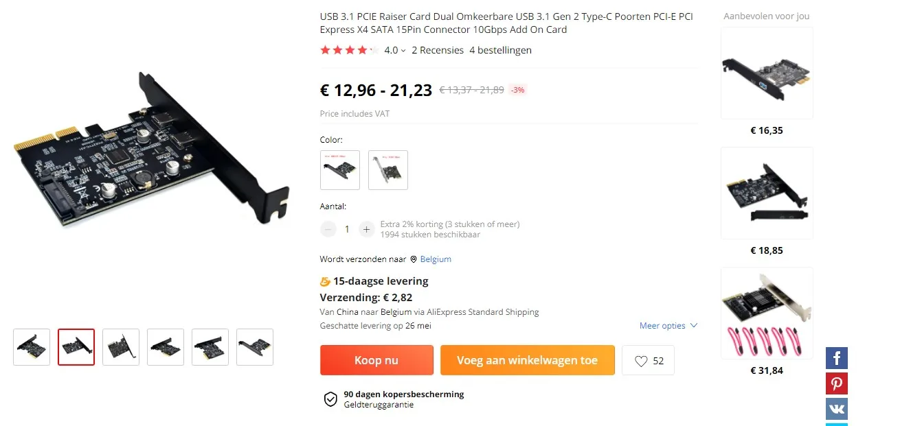 Item type2-port usb 3.1 pcie card
