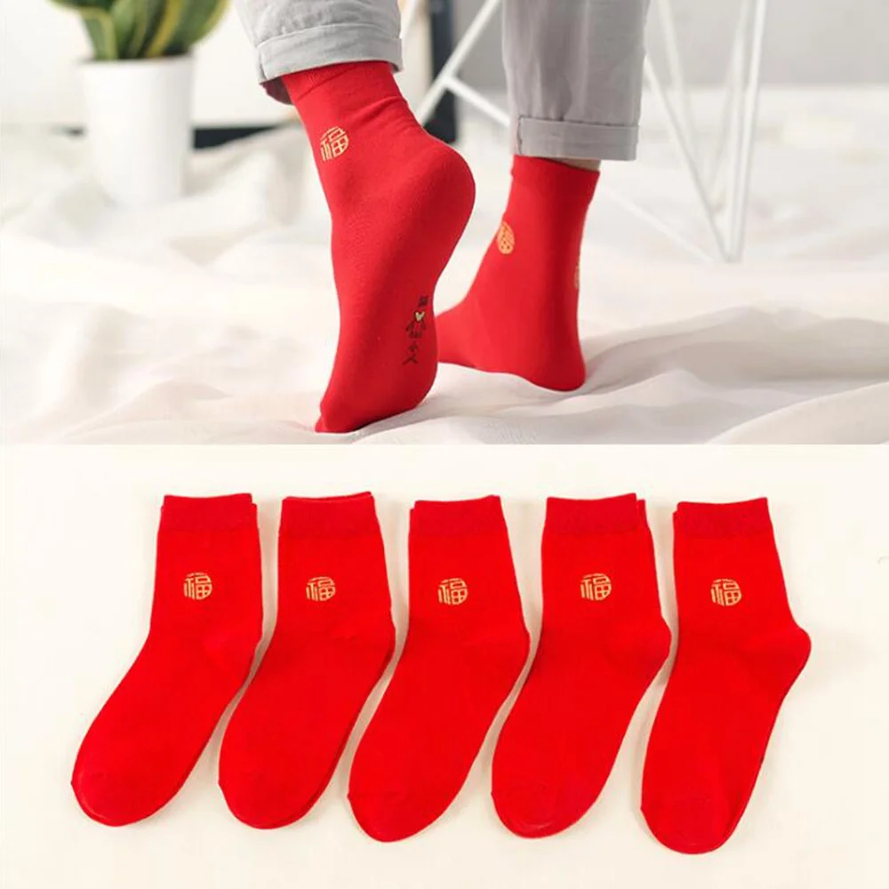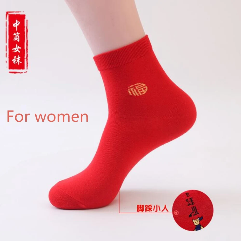 1 пара, красные, пара носков, красные, новогодние хлопковые носки с китайскими иероглифами, праздничные индивидуальные пара носков