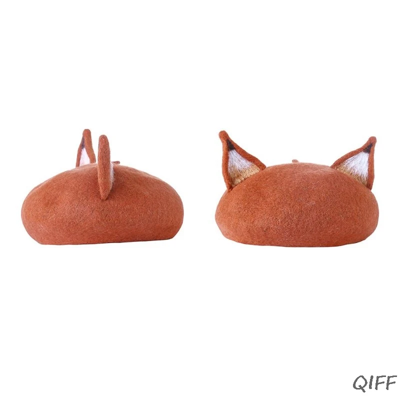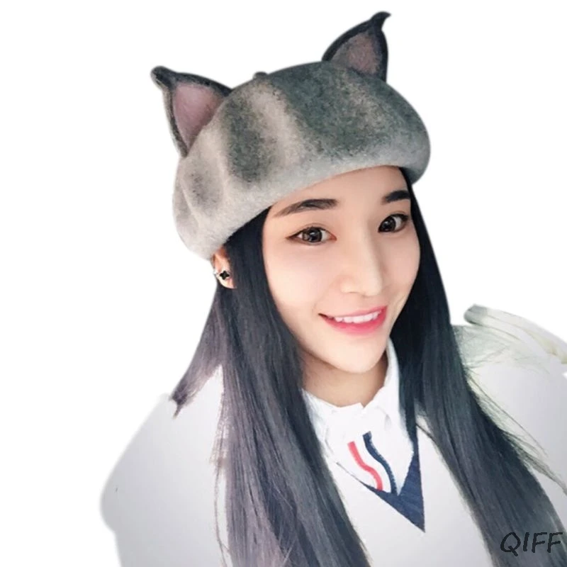 Корейский женский ретро-берет для девочек, милый 3D берет с кошачьими и лисьими острыми ушками из искусственного фетра, студенческий зимний теплый берет
