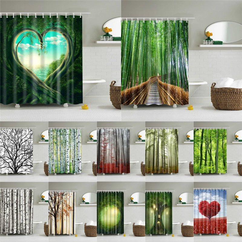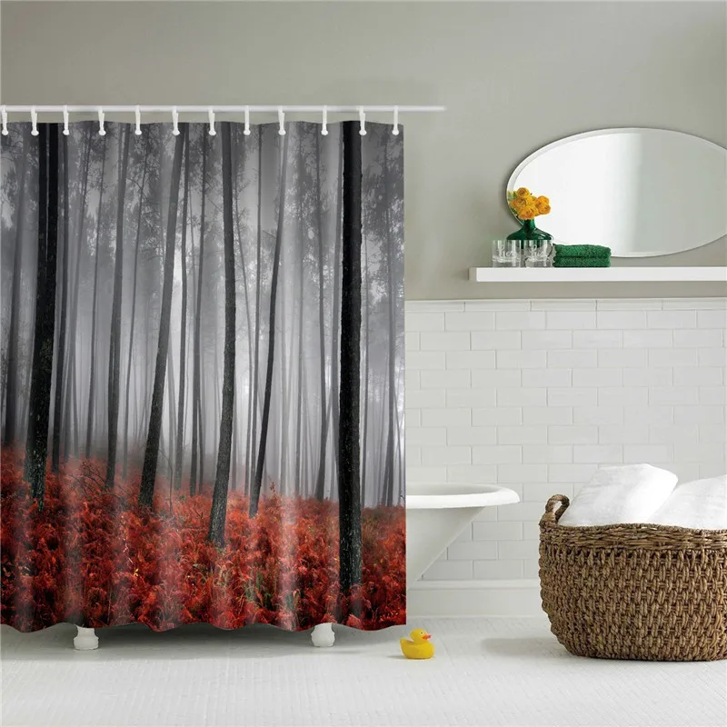 Занавеска для душа, из полиэстера, с принтом, 12 крючков