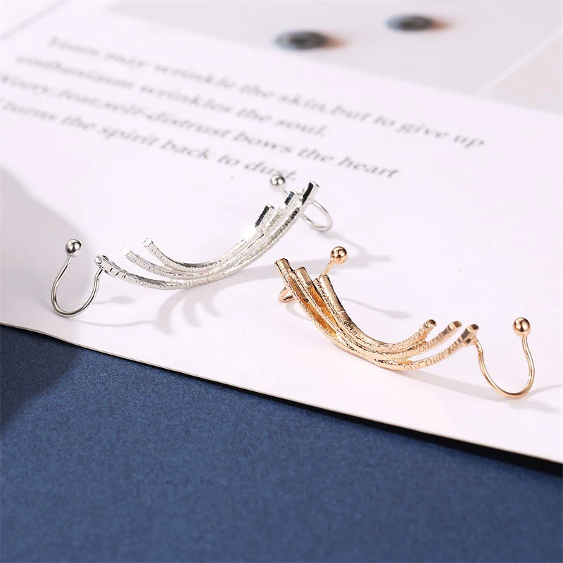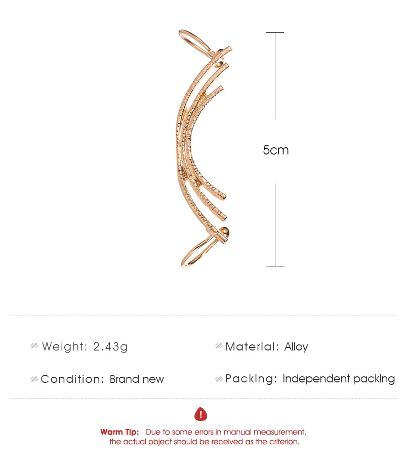 Серьги-каффы в стиле панк женские, клипсы золотистого цвета с ангельскими перьями для одной девушки, Подарочная бижутерия, 1 шт.