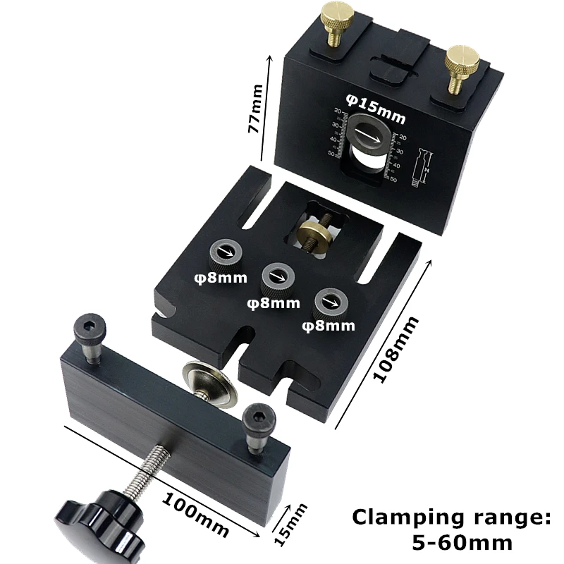 Набор кондукторов для деревообработки, с зажимом, регулируемый перфоратор, руководство по сверлению, для соединения мебели, столярных инструментов