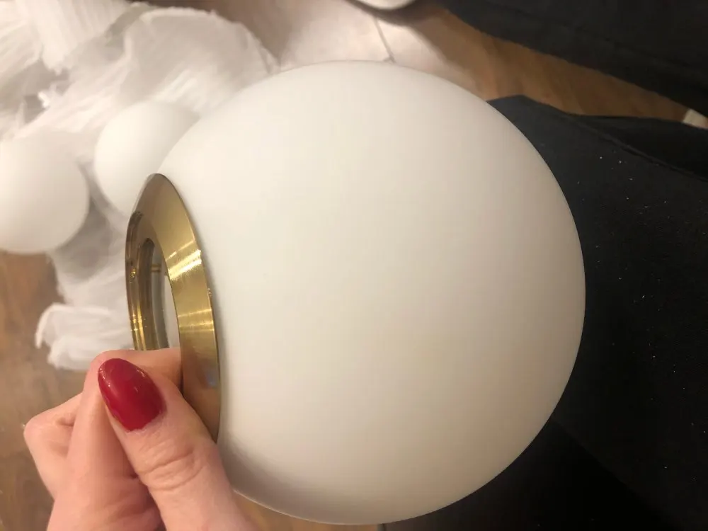заказывала 3 светильника. вроде все хорошо, работают, ещё не повесила их. Две штуки пришли нормальные, а вот на третьем был брак на стекле, какие то разводы. И патрон в этих светильниках, не черный,как на фото, а серый, ближе к белому.