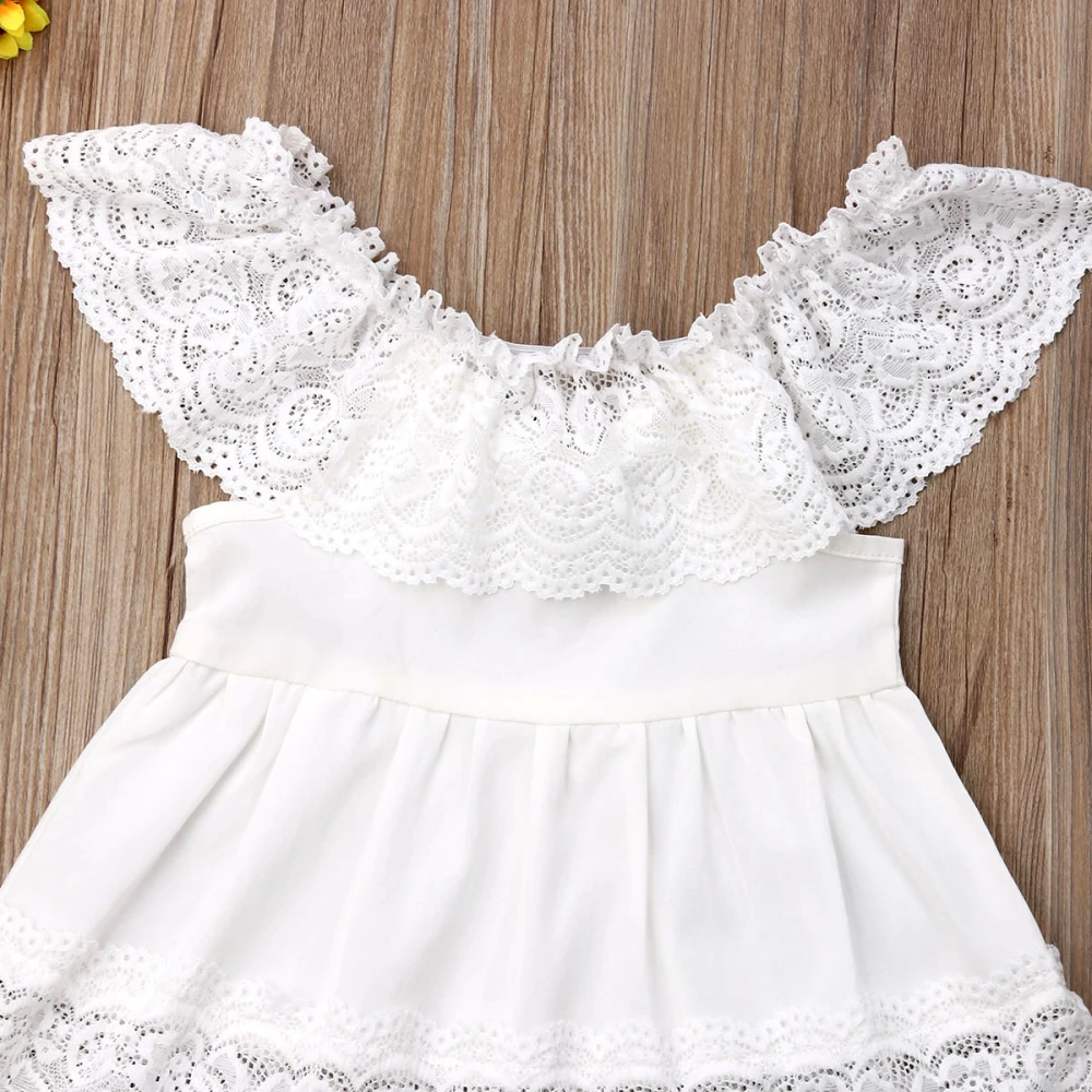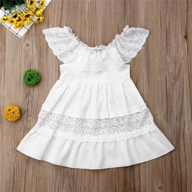 2020 модная летняя одежда для маленьких девочек белое кружевное Цве...