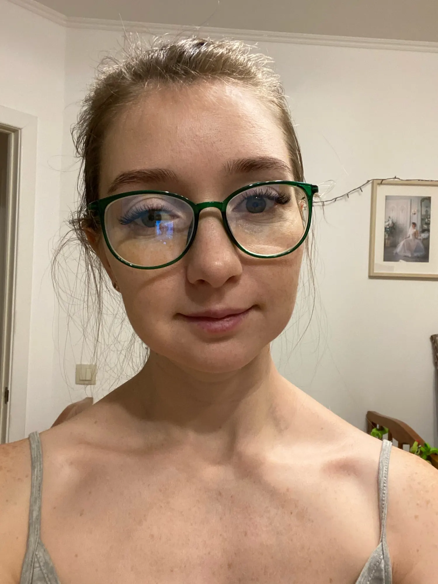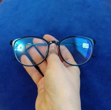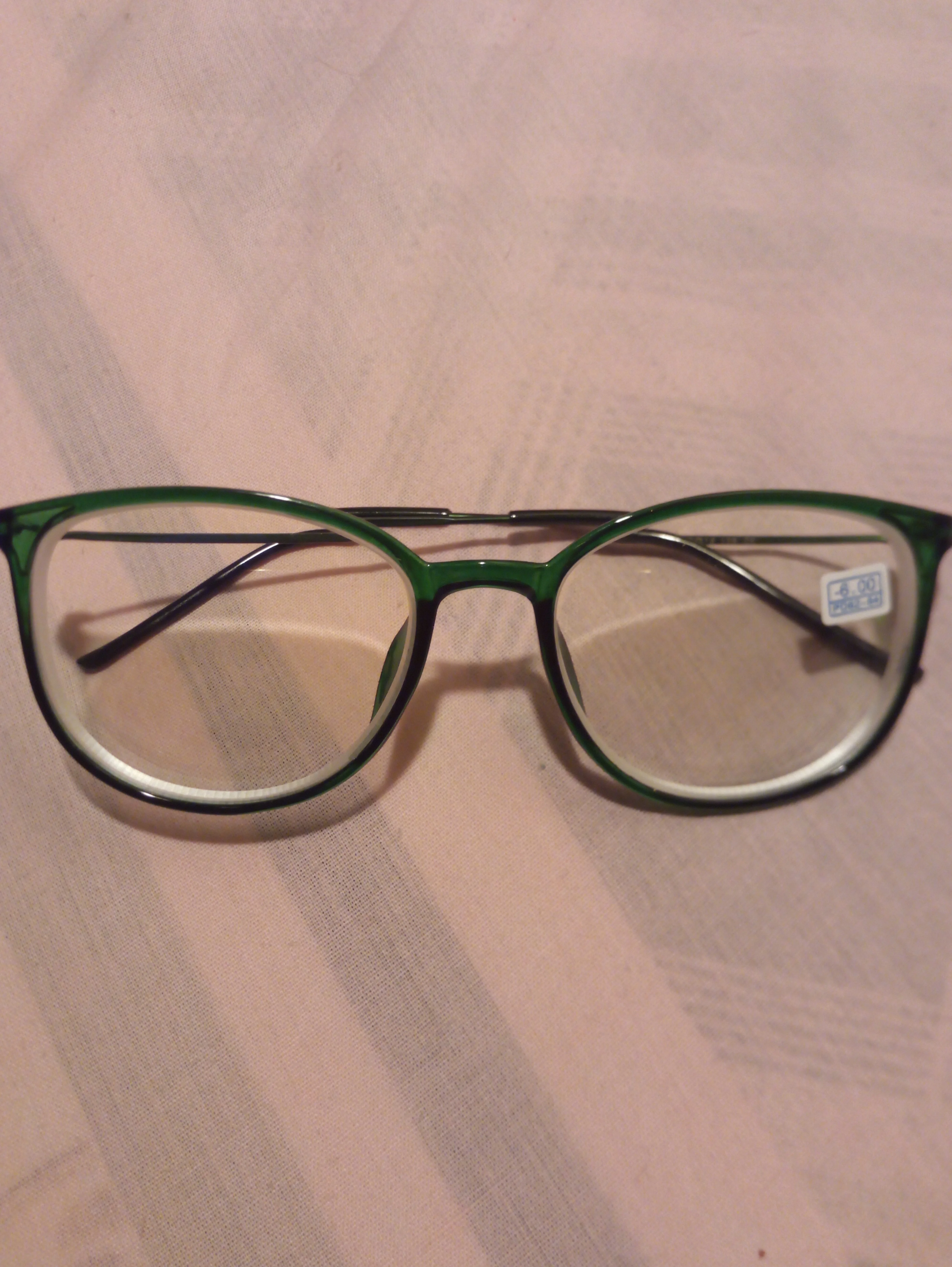 Зелёная оправа не такая насыщенная в жизни (это даже лучше). Очки лёгкие, удобно сидят, дужки тонкие, но не давят. Сначала как надела были неприятные ощущения в глазах, но потом глаза адаптировались (возможно заказала больший минус, чем нужно для очков). Для не постоянного ношения хорошие за свою цену.
