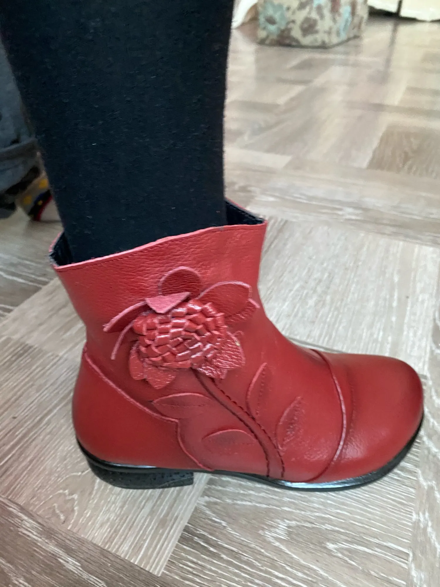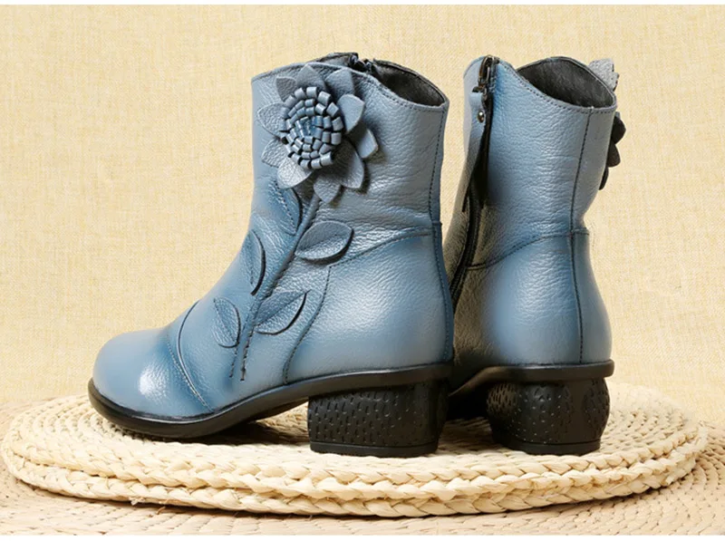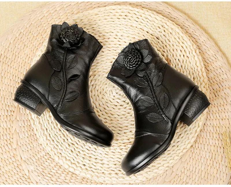 Ботинки женские из натуральной кожи, на молнии, с цветочным принтом