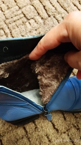 Оплатила 07.11.20, пришли 22.12.20 (в Сибирь). Очень мягкие, комфортные, лёгкие. Удобные, словно носочки. Снаружи кожа, внутри искусственный мех (фото). Стоя на полу мой след 25 cm. Стелька ботильон, тоже 25 cm. Но, тем не менее, они мне великоваты на 1 cm, примерно. Внутри свободно. Если бы брала снова, заказала бы без запаса на носочек. Вероятно, что ещё разносятся. Пришли в обычном пакете, в идеальном состоянии. Ботильоны замечательные. Рекомендую. Посмотрим, на сколько хватит .
