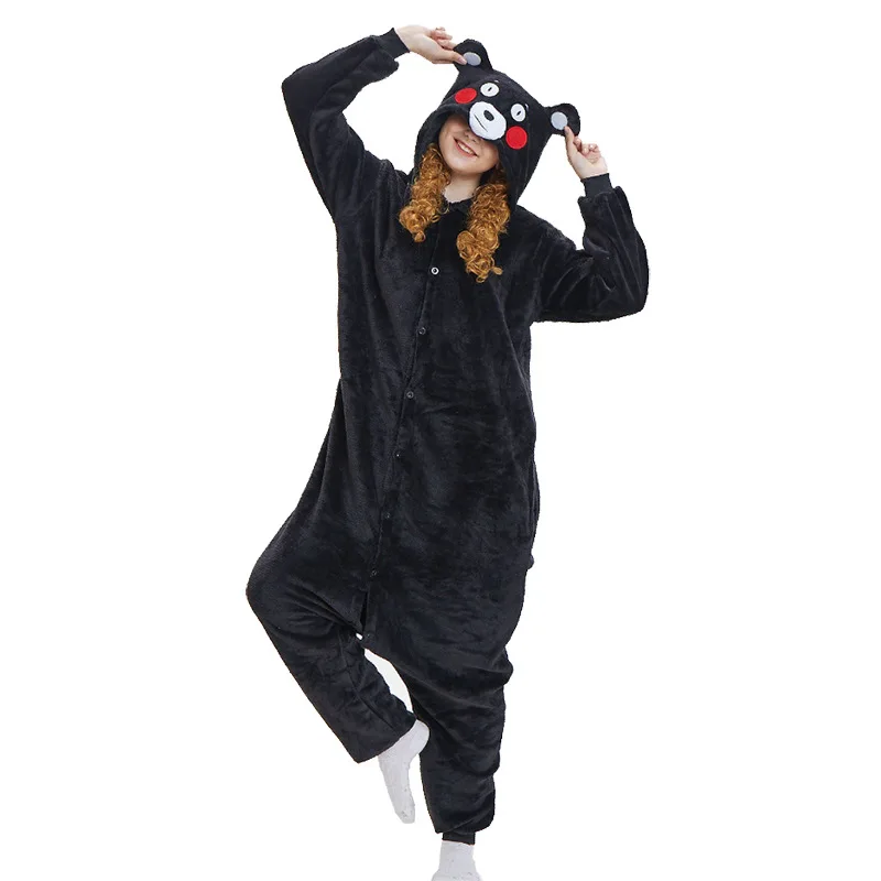 Милые Мультяшные кигуруми Кумамон Медведь пижамы с длинным рукавом с капюшоном Взрослые женщины животные Хэллоуин Рождество одежда для сна