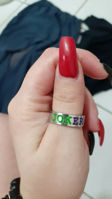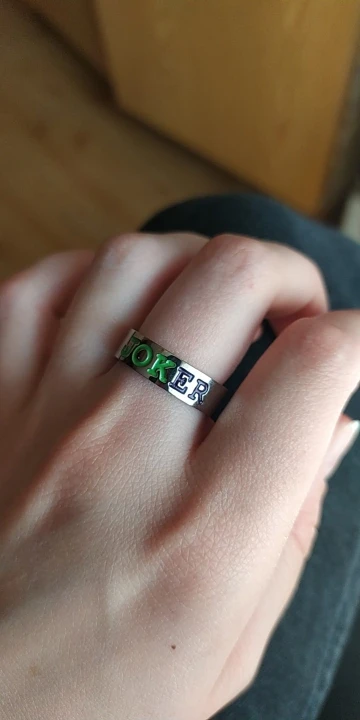 Кольцо - бомба. Правда надпись не зелёного с фиолетовым цветов, а зелёного и чёрного. Но я всё равно рад. Подошло идеально. Изначально на букве Е подстерлась краска, но это ничего. Буду носить аккуратно