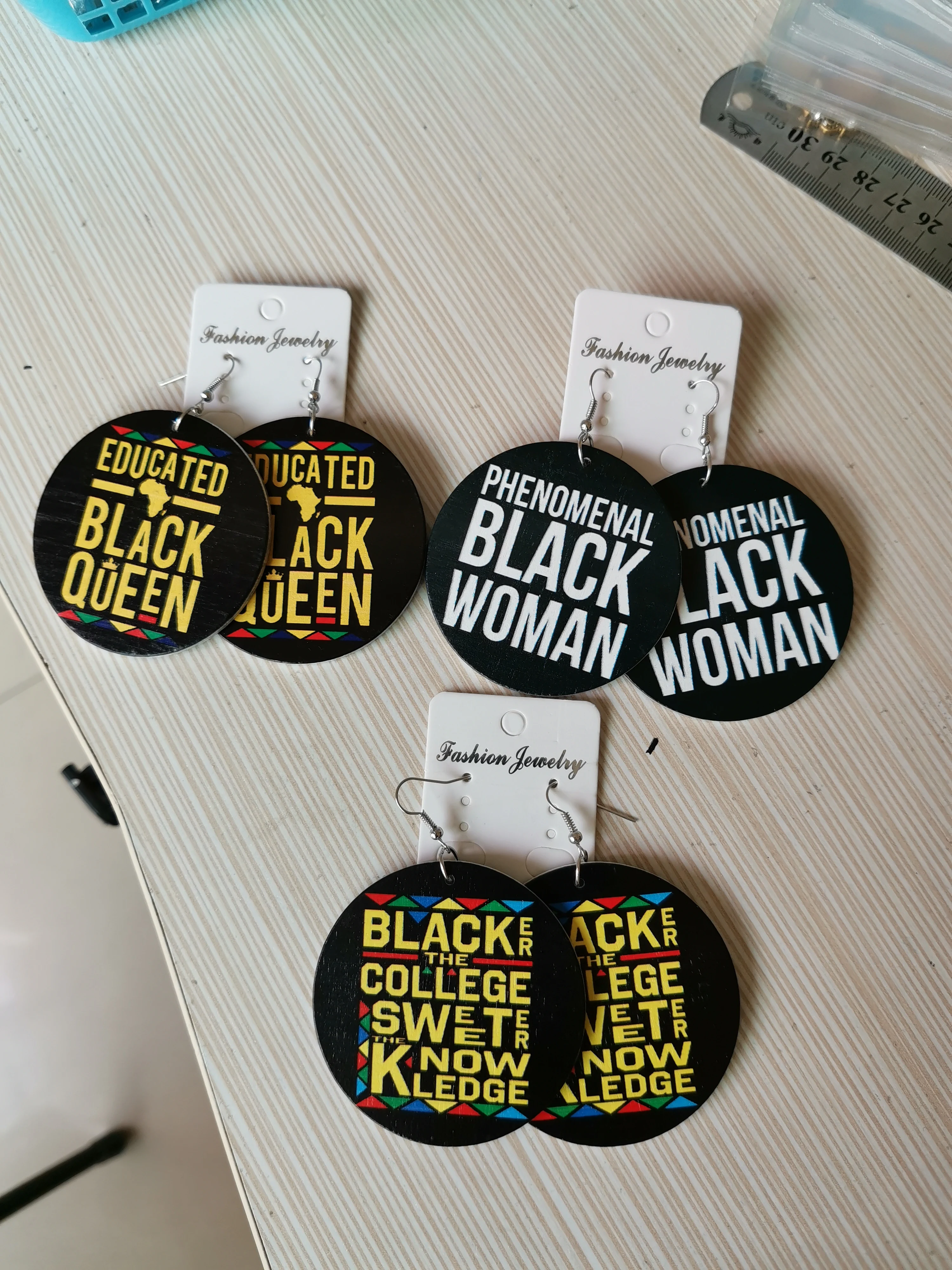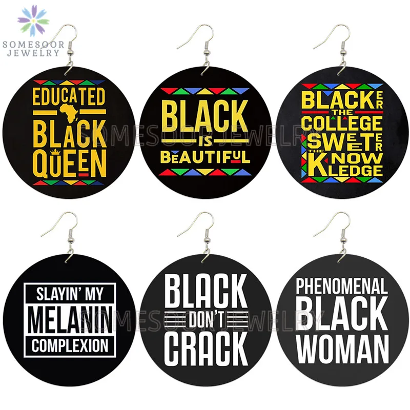 SOMESOOR # черные высказки феноменальные женские африканские деревянные серьги образованная Афро Королева меланин печатные деревянные ювелирные изделия для женщин Подарки