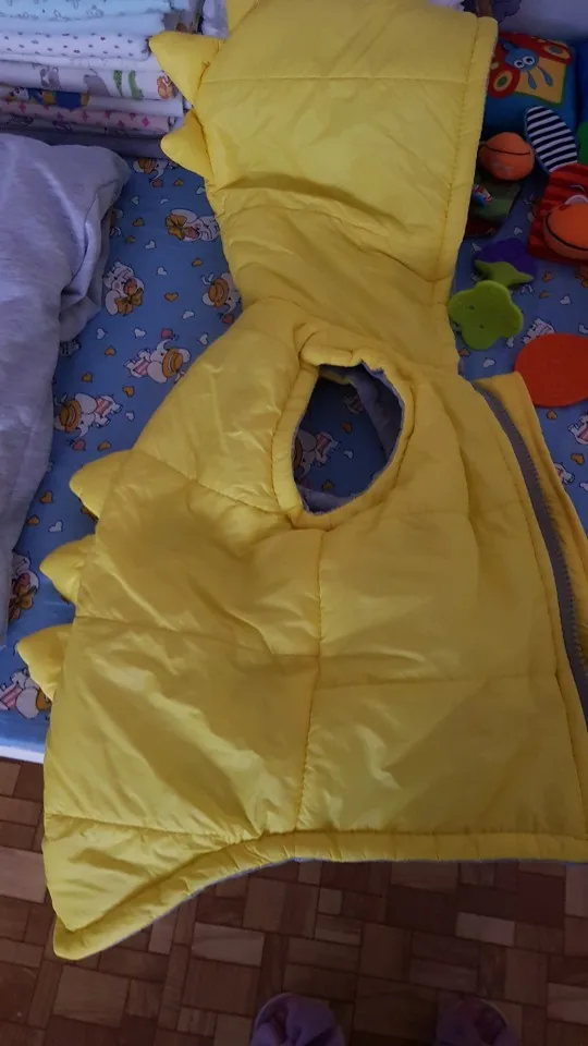 Куртка детская без рукавов, на молнии, с капюшоном, с динозавром, теплая, осенне-зимняя, 2019