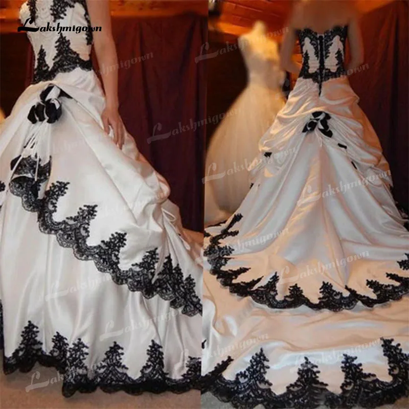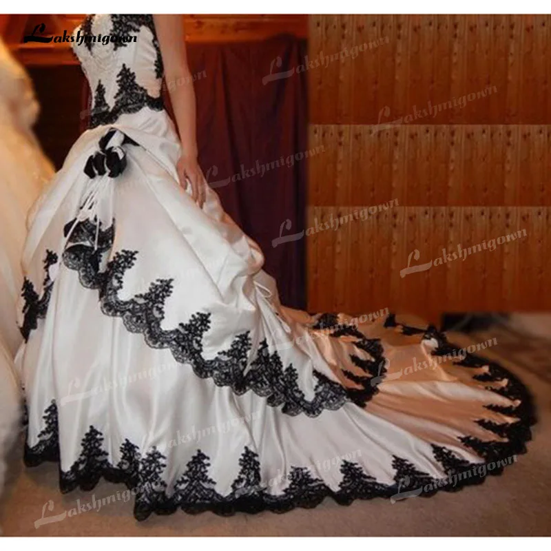 Черно-белые свадебные платья 2021 готическое кружевное женское свадебное платье с длинным шлейфом на шнуровке атласное платье для Хэллоуина 1920-х годов