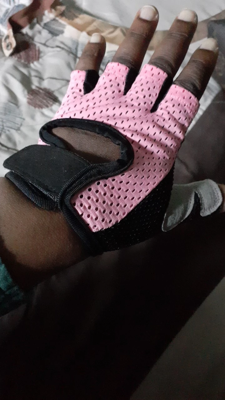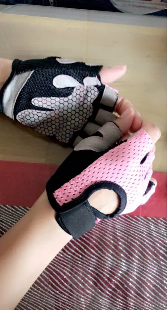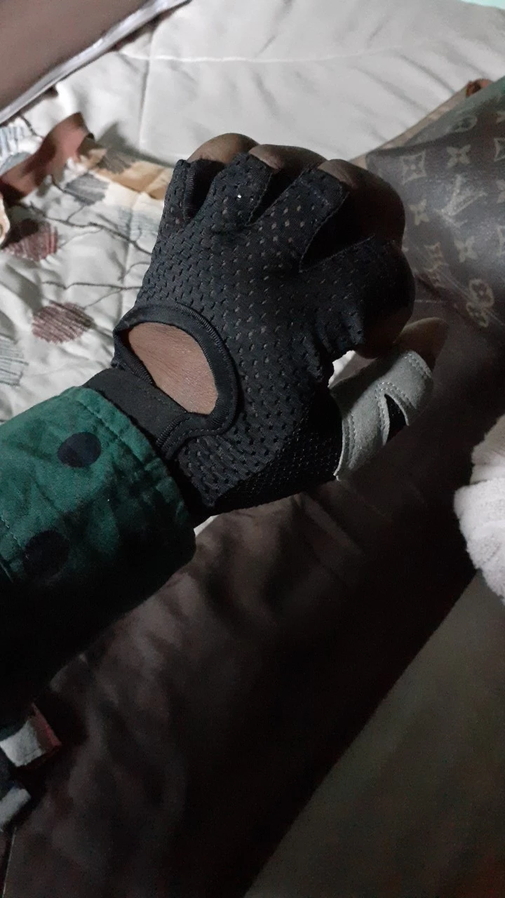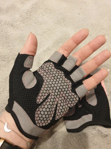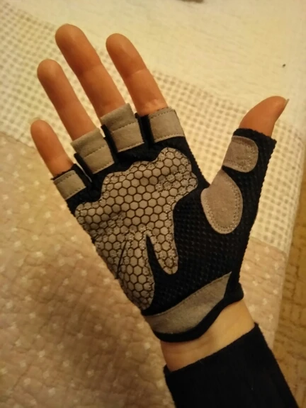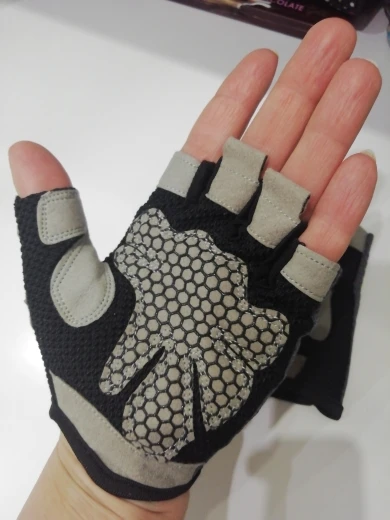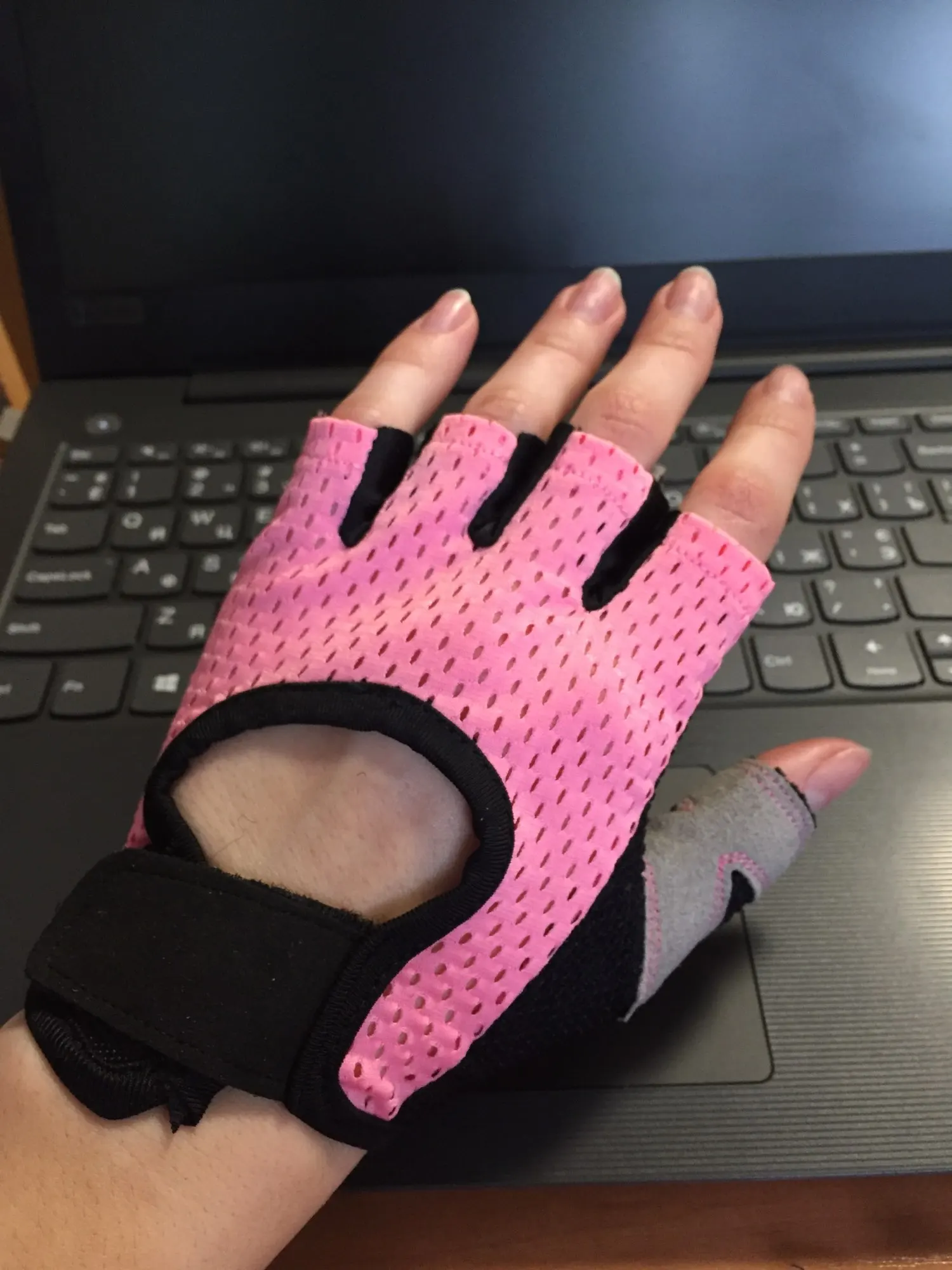 Мне очень понравились перчаточки, легонькие, аккуратные. Мне именно такие и хотелось, чтобы немного защищать руки от турника или для упражнений на полу. Это не для тяжёлых весов, и летом можно спокойно одевать. Они тонкие, на ладошке под пальчиками есть небольшие смягчающие вставочки, а вот у основания большого пальца только искуственный замш. С размером угадала, идеально по руке. Качество и дизайн классные