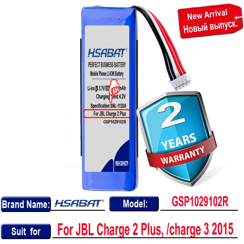 Аккумулятор HSABAT 0 цикл 17000 мАч GSP1029102R для JBL Charge 2 Plus,Charge 2 +,charge 3 2015 версия P763098