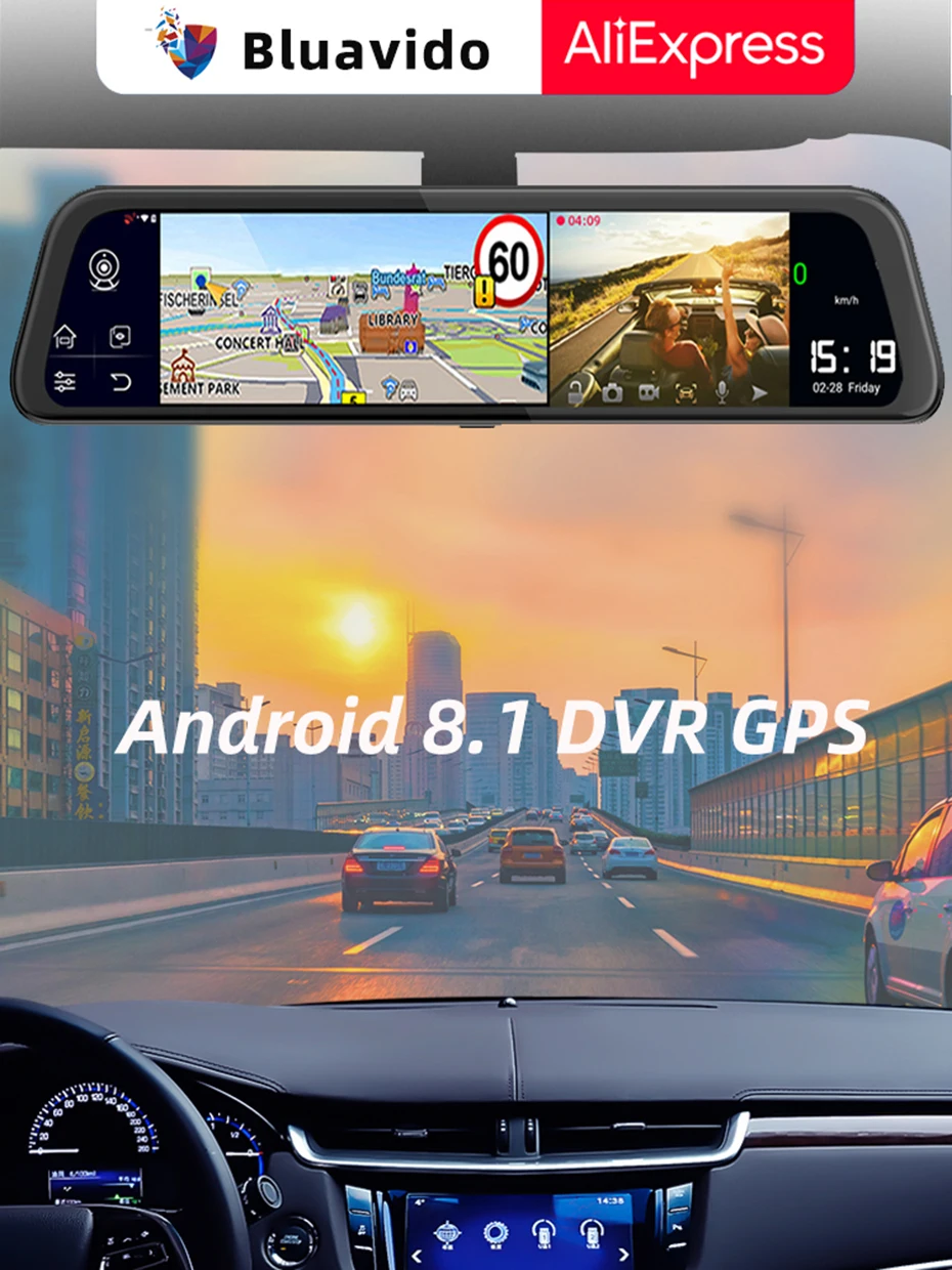 Автомобильный видеорегистратор-зеркало Bluavido, 4G, ADAS, Android, GPS-навигация, 12-дюймовый видеорегистратор заднего вида, 1080P, Wi-Fi, удаленный мониторинг