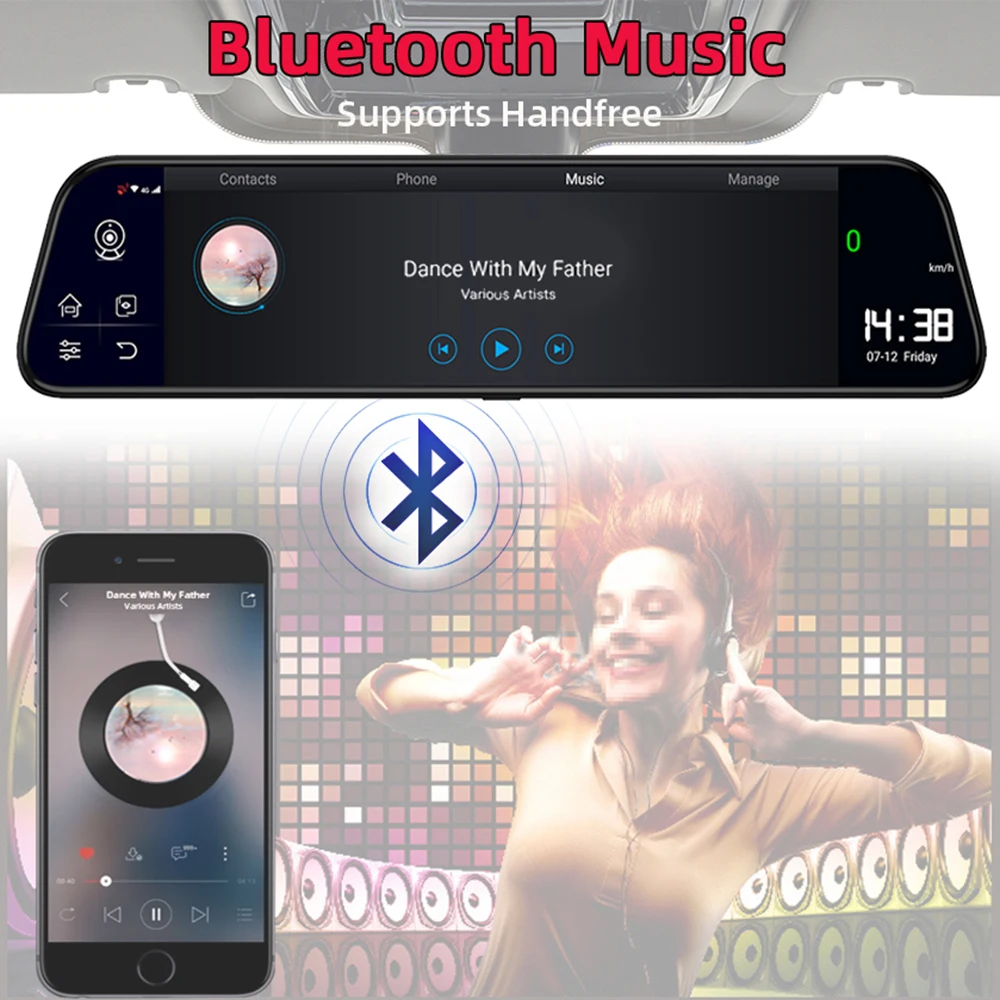 Благодаря bluetooth hands-free, После сопряжения bluetooth между dvr и смартфоном, вы можете совершать и принимать звонки непосредственно с зеркального видеорегистратора с помощью встроенного микрофона и динамика. Вы также можете воспроизводить музыку через Bluetooth.