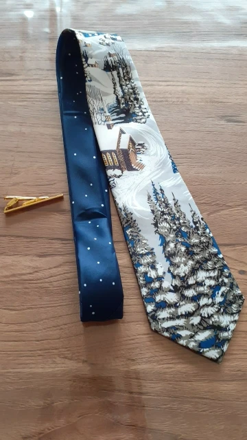 Галстук лучше, чем выглядит на фото: не блестящий полиэстер, не тонкий, ширина 9 см, качество печати довольно хорошее. И ПРОДАВЕЦ тоже очень добр, он прислал мне бесплатно Рождественский зажим для галстука. Я абсолютно доволен этой покупкой.