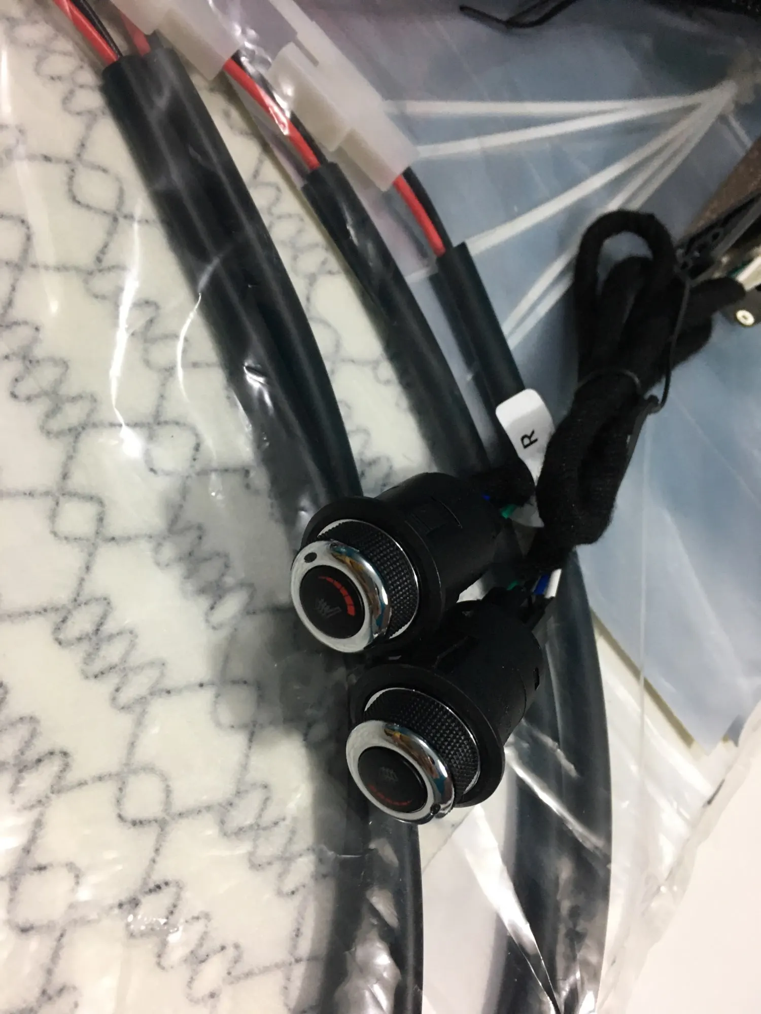 Установил под чехлы. Подшивал к сиденьям. Подключал чёрный минус на массу, толстый красный плюс к аккумулятору, тонкий красный от зажигания, жёлтый от габаритов. Переключатели меньшего размера, чем ожидал. На пятой скорости греет ощутимо, меньше не пробывал.