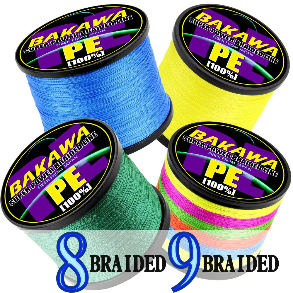 Плетеная рыболовная леска BAKAWA для ловли карпа, мультифиламентный шнур для спиннинга, 8 нитей, 9 нитей, 100 м, 300 м, 1000 м