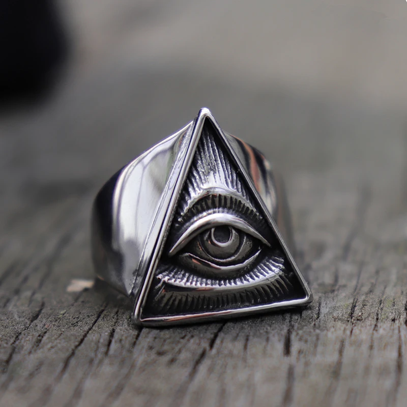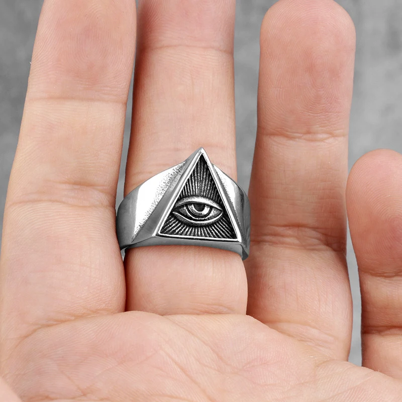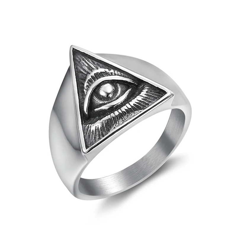 Мужское кольцо с треугольным глазом демона из нержавеющей стали