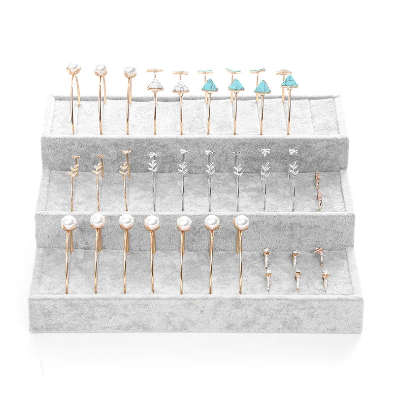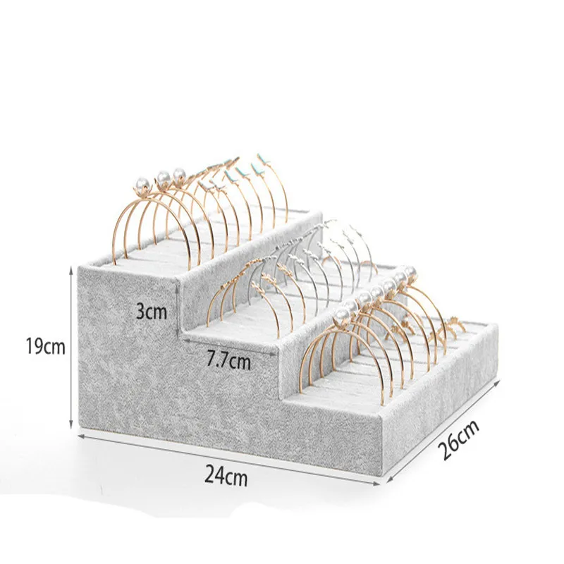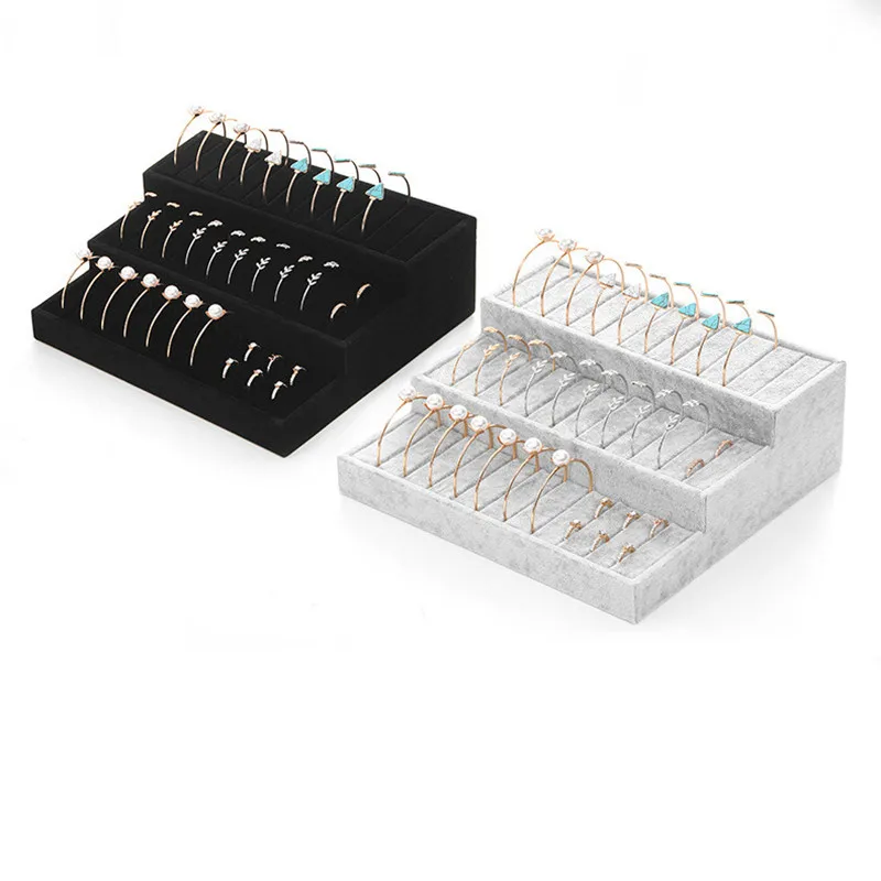 Серый бархатный 3-слойный дисплей для колец, дисплей для ювелирных ...