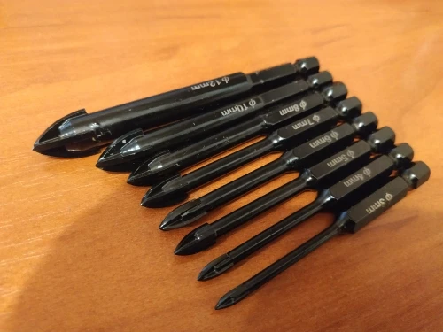 Товар отличный за такие деньги, удобные быстросъемные. Стойкость наконечников хорошая (керамогранит берет, правда большие отверстия долго сверлить, сначала лучше маленьким диаметром бурить, потом шарошить уже большим)