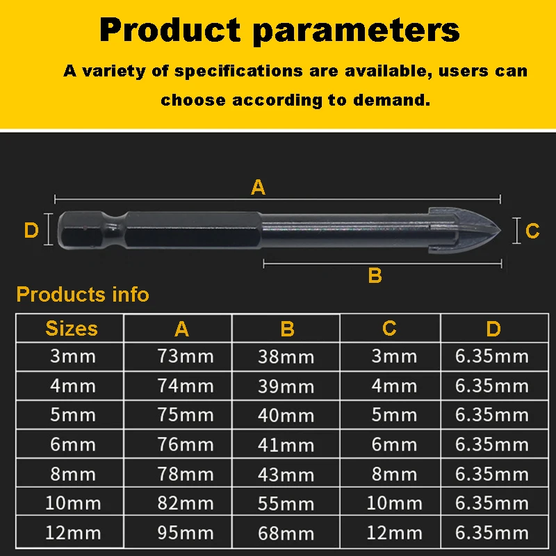 Набор сверл для керамической плитки, мрамора, 3456781012 мм, из карбида вольфрама, зеркальное сверло