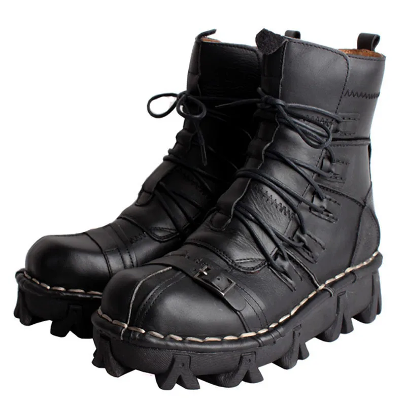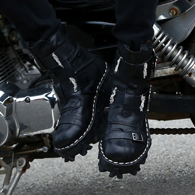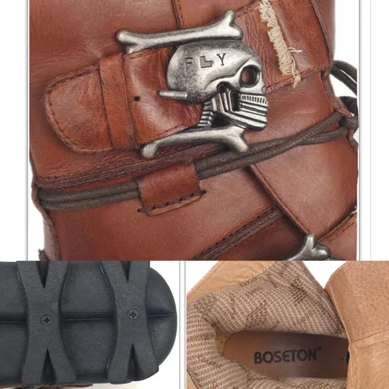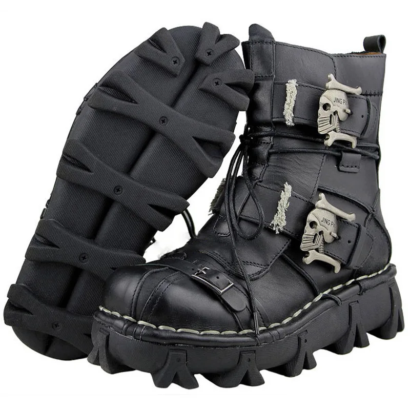 Мужские ботинки из натуральной воловьей кожи, ботинки в стиле милитари, мотоциклетные ботинки-мартинсы в готическом стиле, с черепом, для верховой езды, скалолазания