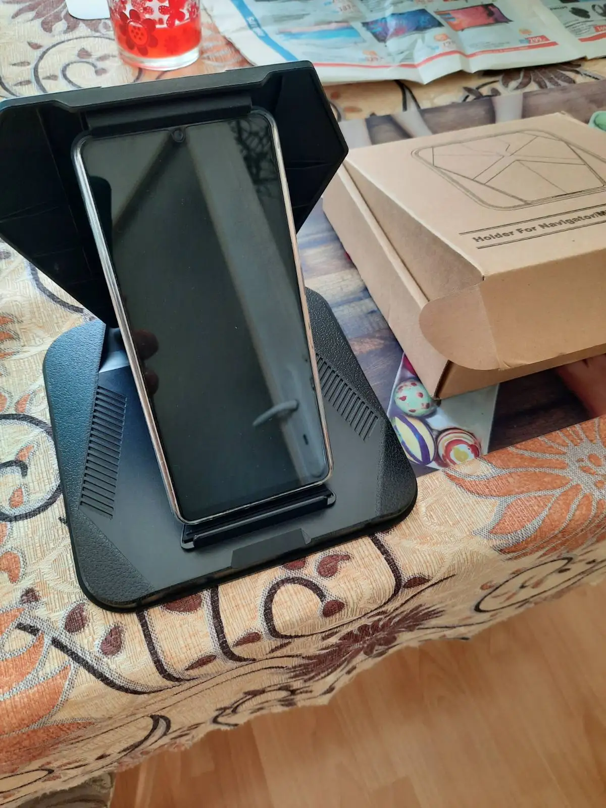 как в описании. удобный,регулируеться наклон телефона. в ночное время экран не так сильно отражается на лобовом стекле. рекомендую...