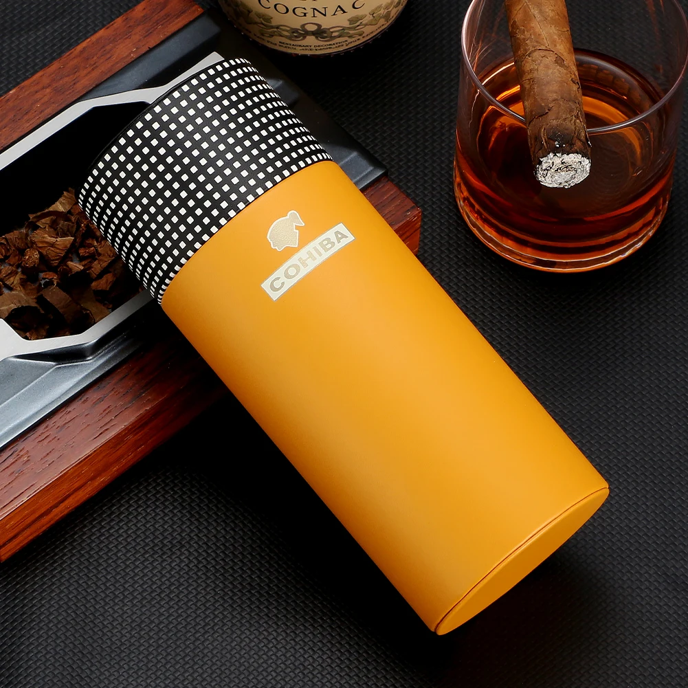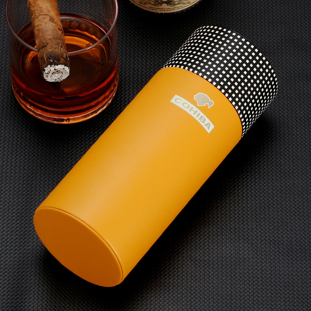 COHIBA сигарная трубка для путешествий хьюмидор кожаный портативный чехол для сигар кедровое дерево коробка для сигар Втхьюмидор увлажнитель сигар гигрометр