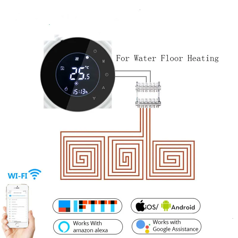 Умный контроллер температуры, регулятор нагрева воды, теплого пола, работы газового бойлера, Wi-Fi, совместим с Alexa Google Home