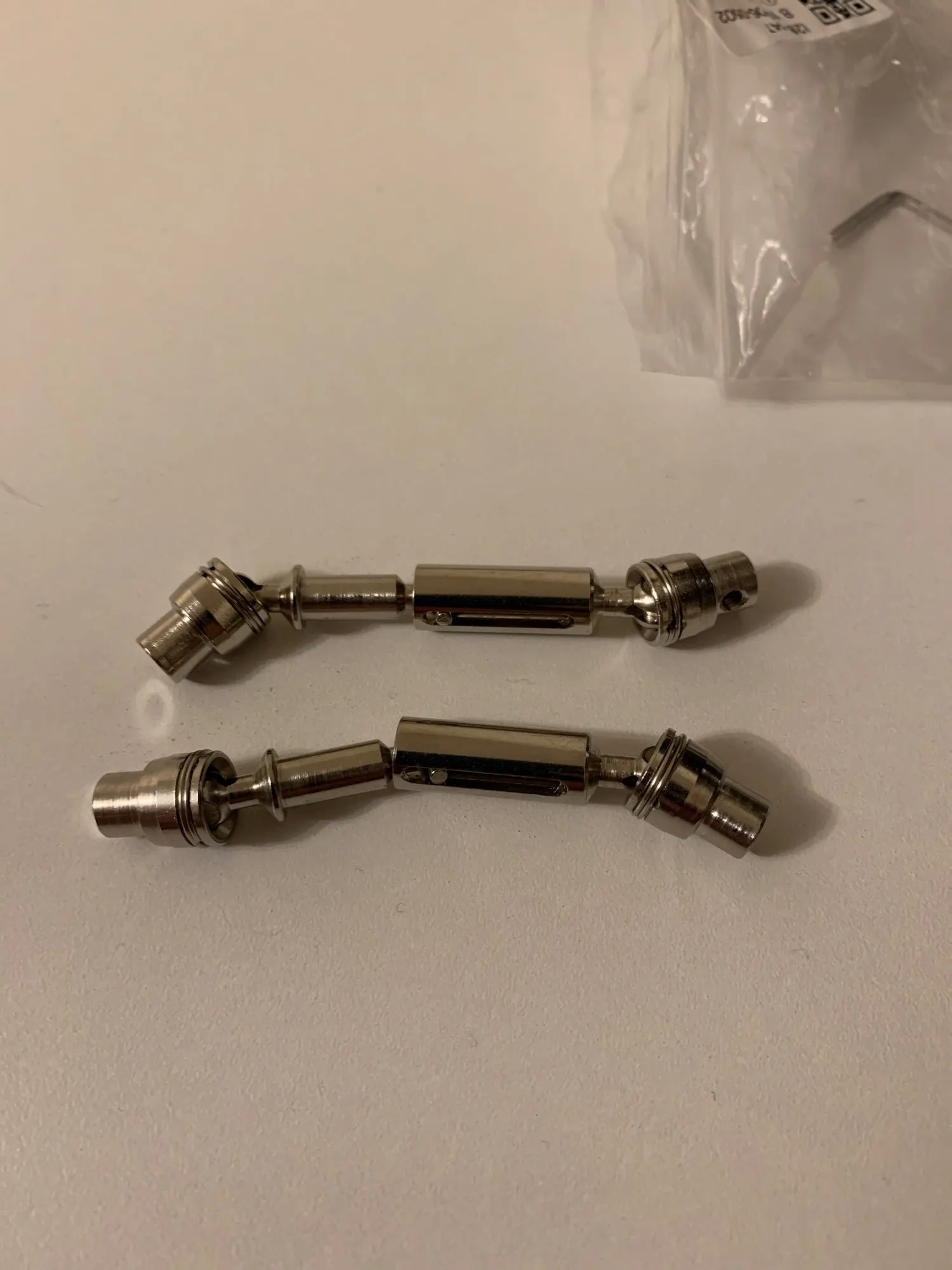 До Питера с момента заказа до поступления на почту ровно 14 дней - отличная скорость доставки. Минимальная рабочая длина 58мм, максимальная рабочая - примерно 68мм. Максимальная длина 72мм. Вращаются очень плавно. Понравилось что скажем так шрузы полностью разборные - снимаем пружину, вытаскиваем штырёк, и вынимаем крестовину. У меня в одном шрузе заедал круглый пиньён, в который штырёк вставляется - оказалось что одно отверстие под пиньен было не совсем ровно проточено, 5 минут с натфилем и всё ок. Вобщем отличные карданчики.